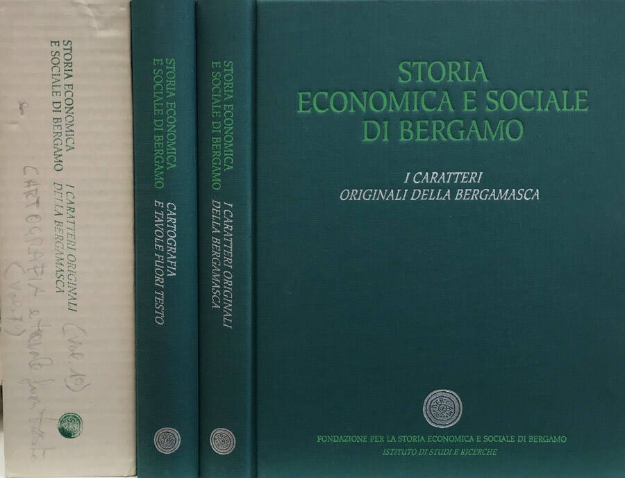 Opera completa in due volumi rilegati in tela verde con titoli al piatto e al dorso; lo stato di conservazione generale è molto buono ed entrambi i volumi sono confezionati all'interno di un cofanetto muto cartonato protettivo, il quale mostra lievissimi segni di usura alle estremità e annotazioni a matita sul dorso; l'interno di entrambi i volumi è ottimo, ricco di illustrazioni fotografiche, grafici, cartine e schizzi a colori e in b/n sia al testo che a tutta pagina. Opera divisa in : I caratteri Originali della Bergamasca, e Cartografia e tavole fuori testo (volume contenente esclusivamente carte ripieghevoli). Numero Pagine 365
