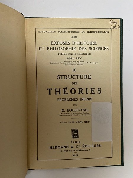 STRUCTURE DES THEORIES PROBLEMES INFINIS | Libri antichi e moderni | Bouligand G.