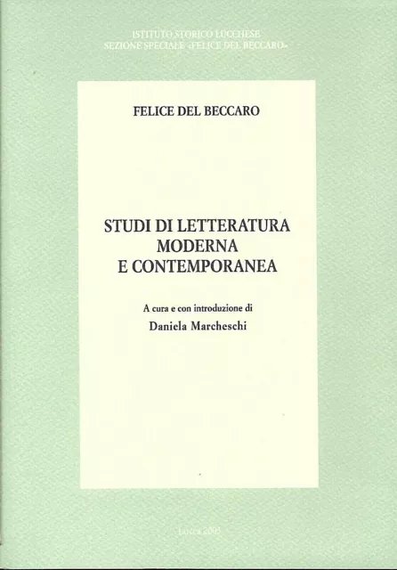 Studi di letteratura moderna e contemporanea. A cura e con introduzione di Daniela Marcheschi | Libri antichi e moderni | Felice Del Beccaro
