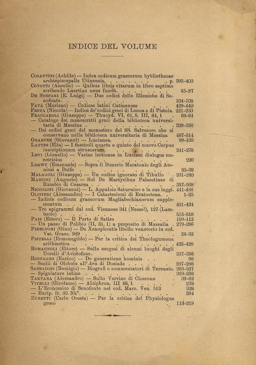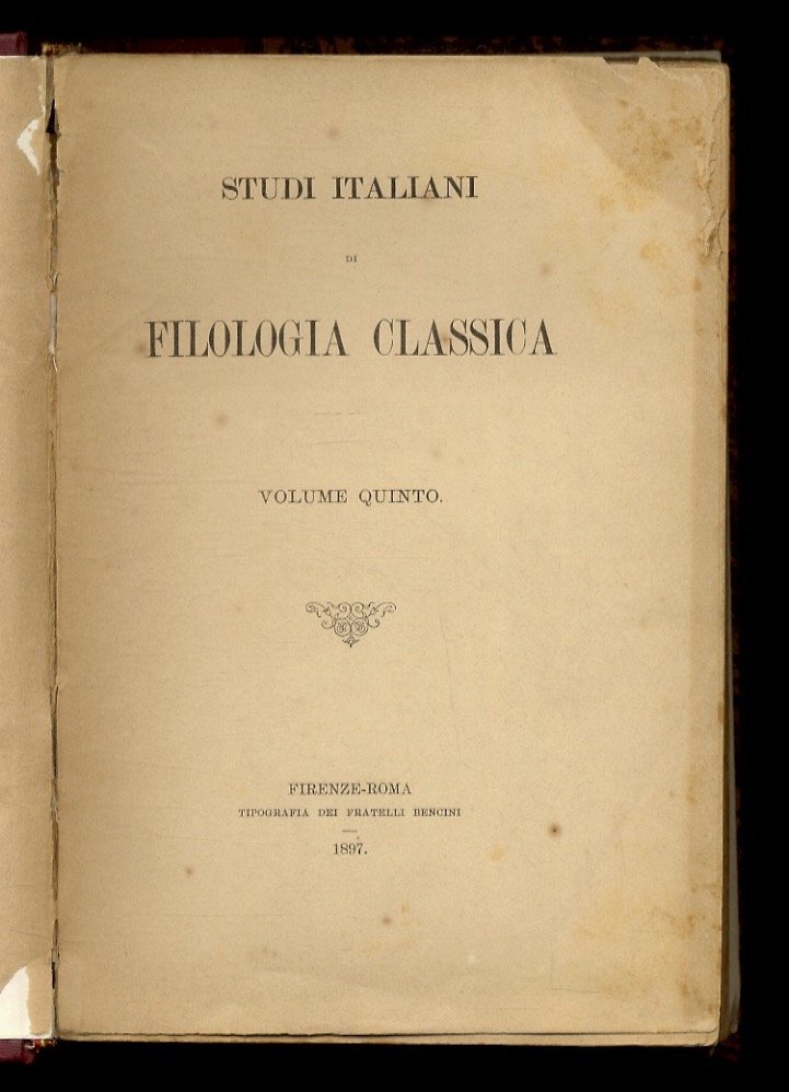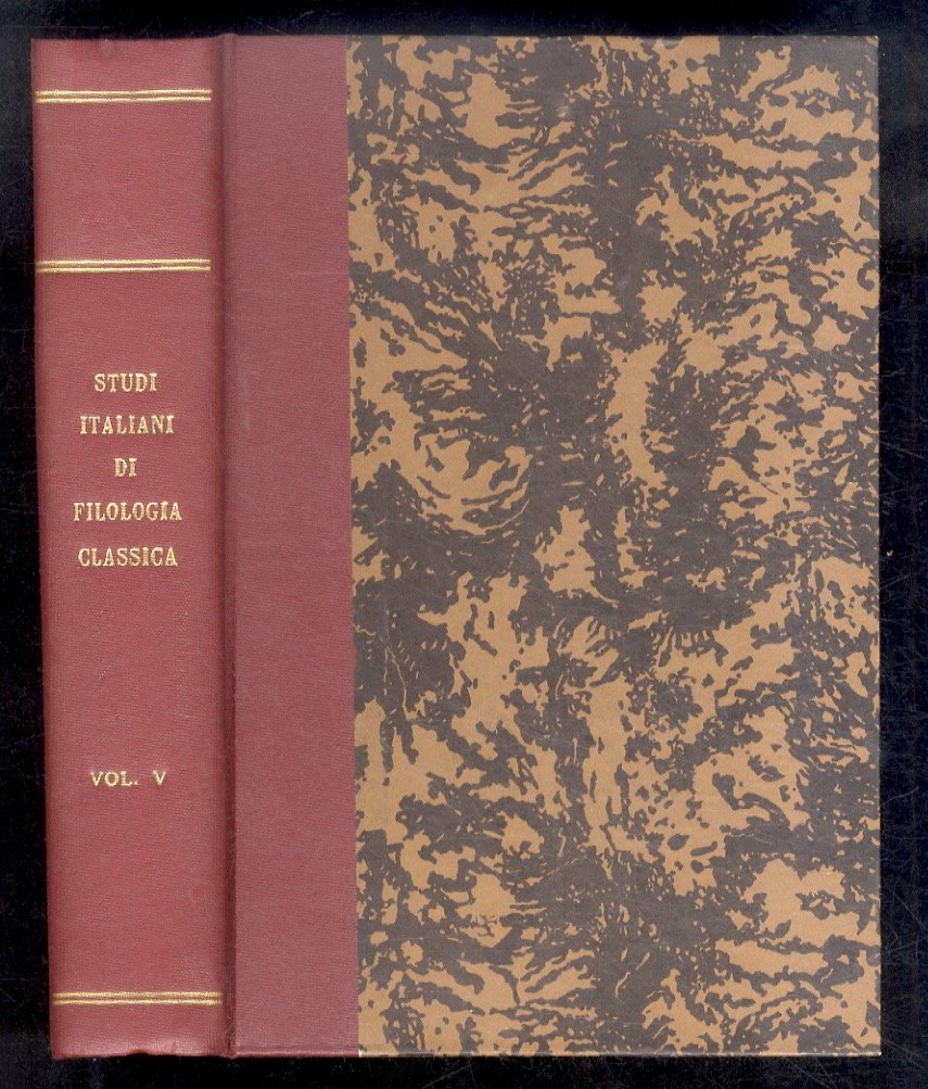 Studi Italiani di Filologia Classica. Volume V. (Scritti di: A. Cosattini, A. Covotti, E.L. De Stefani, M. Fava, N. Festa, G. Fraccaroli, G. Graeven, E.Lattes, L. Levi, E. Loewy, G. Malagoli, A. Mancini, G. Niccolini, A. Olivieri, E. Pais, G. Pierleoni, E. Pistelli, E. Romagnoli, E. Rostagno, R. Sabbadini, A. Tartara, G. Vitelli, C.O. Zuretti).