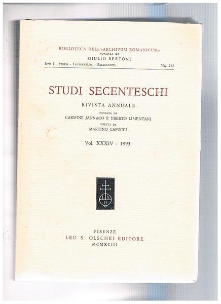 Studi secenteschi, rivista annuale della biblioreca dell"Archivium Romanicum" findata da Giulio Bertoni serie I° storia, letteratura, paleografia. Vol. XXXIV 1993. | Libri antichi e moderni | Capucci Martino Direttore.