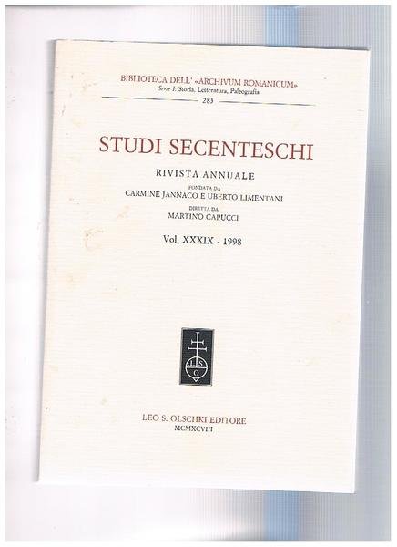 Studi secenteschi, rivista annuale della biblioreca dell"Archivium Romanicum" findata da Giulio Bertoni serie I° storia, letteratura, paleografia. Vol. XXXIX 1998. | Libri antichi e moderni | Capucci Martino Direttore.