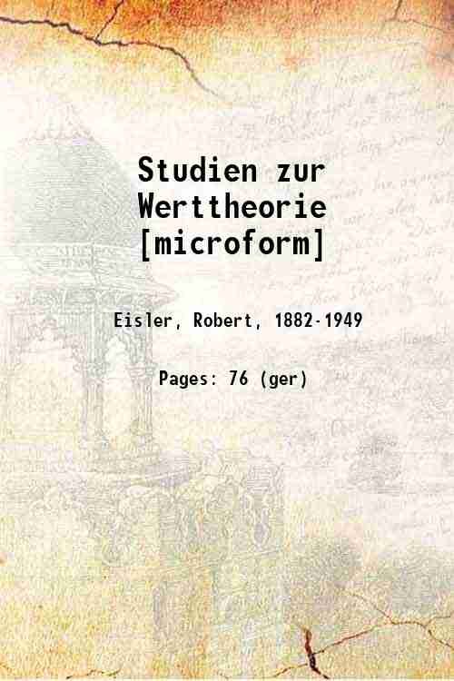 Studien zur Werttheorie 1902 | Libri antichi e moderni | Eisler, Robert