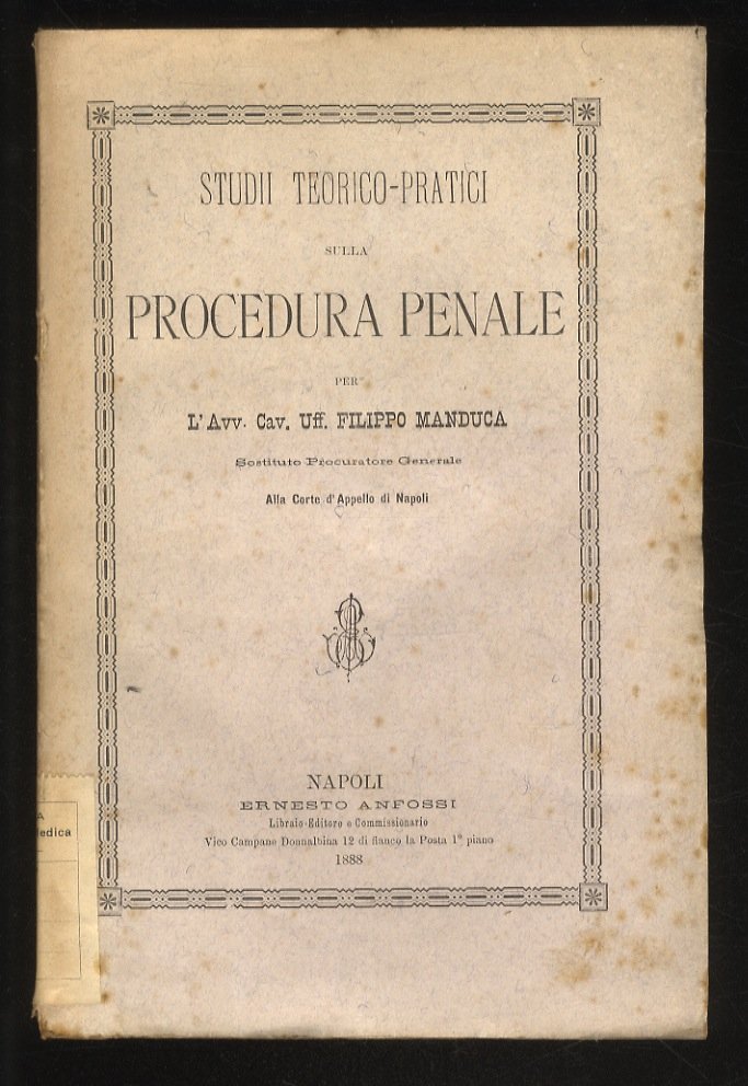 Studii teorico-pratici sulla procedura penale. | Libri antichi e moderni | Manduca Filippo.