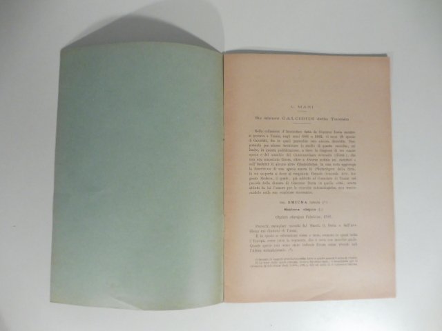 In 8 (cm 16,5 x 24 circa), pp. 10. Brossura muta coeva. Timbro di ex possessore al piatto anteriore. Estratto editoriale dagli Annali del Museo civico di storia naturale di Genova.