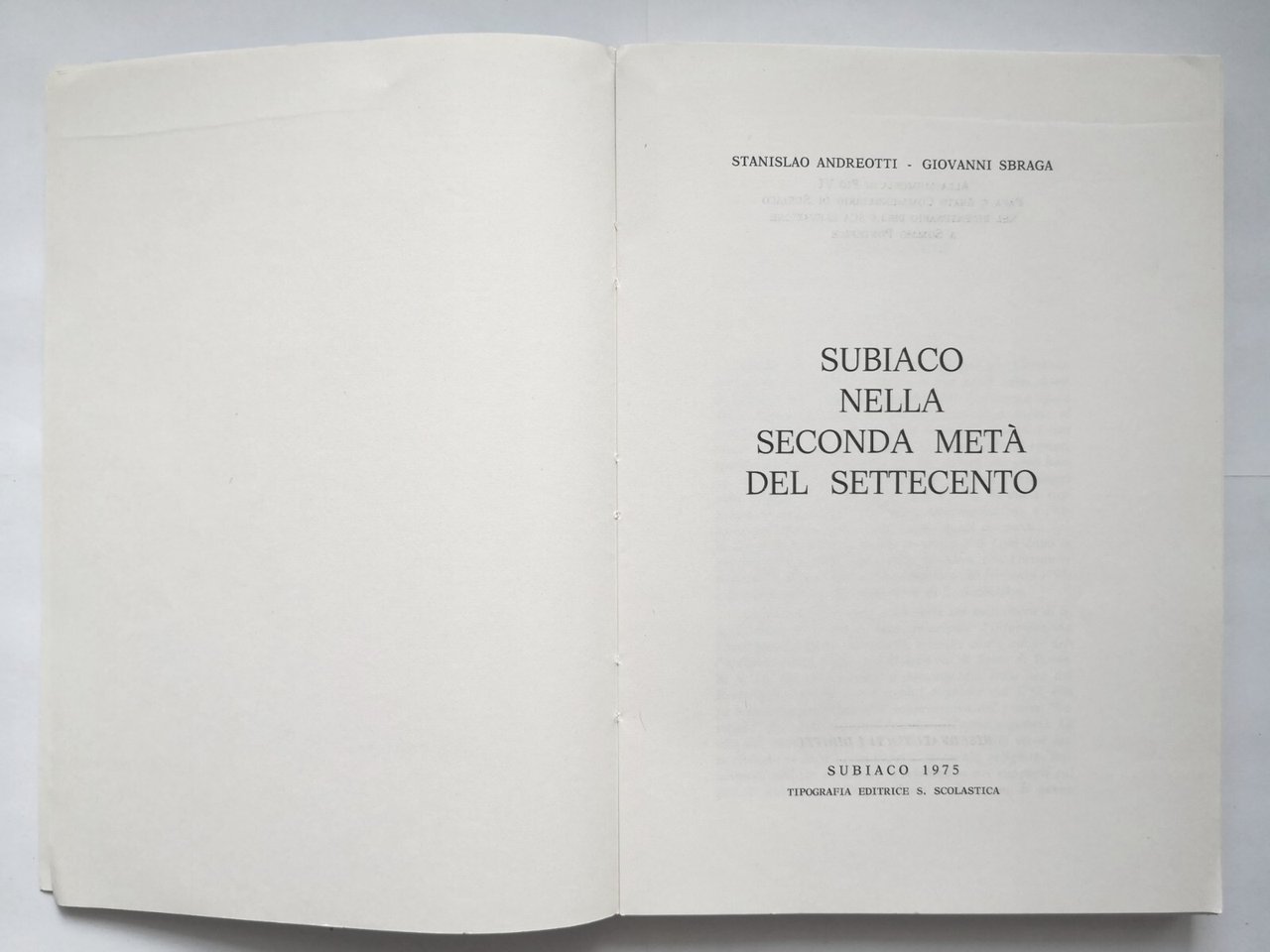 SUBIACO NELLA SECONDA METÀ DEL SETTECENTO di Andreotti e Sbraga 1975 Libro | Libri antichi e moderni |