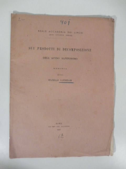 Sui prodotti di decomposizione dell'acido santonoso. Memoria | Libri antichi e moderni | Cannizzaro Stanislao