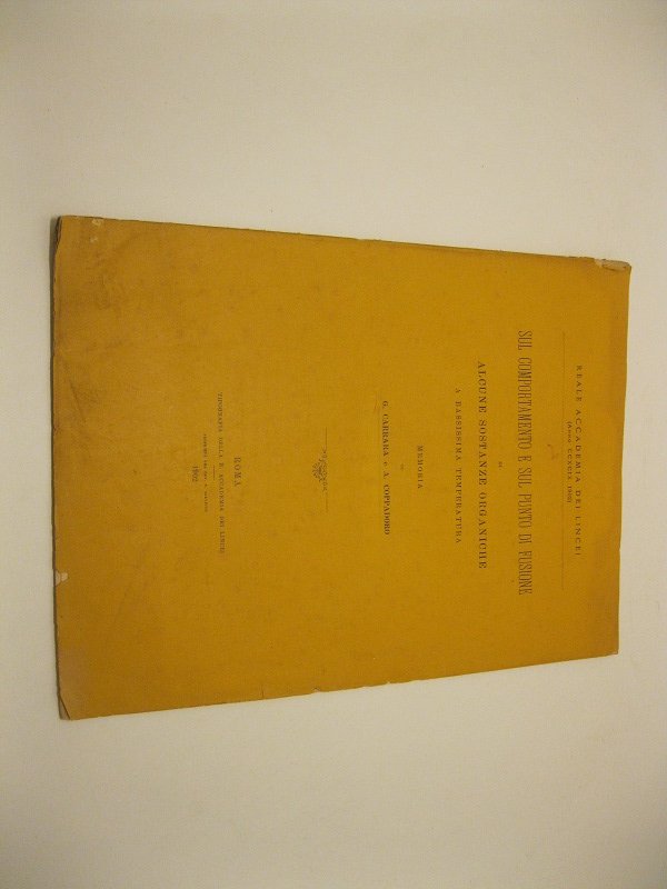 Sul comportamento e sul punto di fusione di alcune sostanze organiche a bassissima temperatura - Memoria di G. Carrara e A. Coppadoro | Libri antichi e moderni | Carrara G., Coppadoro A.