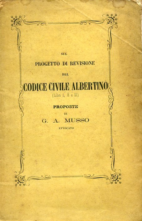 Sul progetto di revisione del Codice Civile Albertino (LIbri I, II e III). Proposte | Libri antichi e moderni | Musso Giacomo Andrea