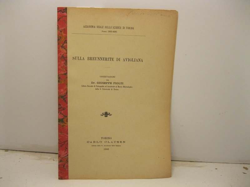 Sulla breunnerite di Avigliana. Osservazioni del Dr. Giuseppe Piolti libero docente ed assistente al Museo Mineralogico della R. Universita' di Torino | Libri antichi e moderni | Piolti Giuseppe