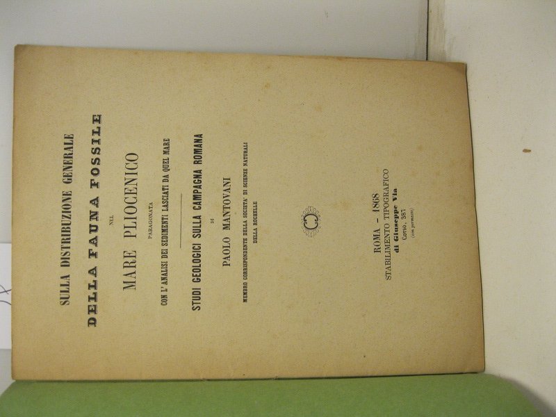 Sulla distribuzione generale della fauna fossile nel mare Pliocenico paragonata con l'analisi dei sedimenti lasciati da quel mare. Studi geologici sulla campagna romana | Libri antichi e moderni | Mantovani Paolo