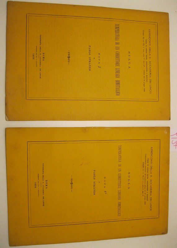 Sulla temperatura di un conduttore lineare bimetallico. Nota 1 e 2 | Libri antichi e moderni | Straneo Paolo