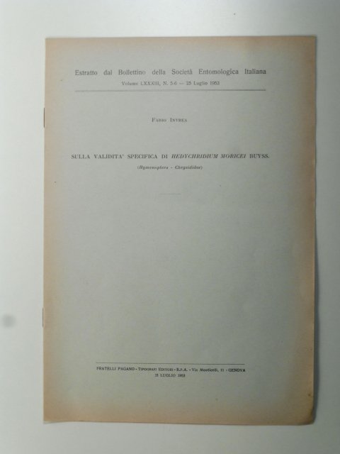 sulla validita' specifica di hedychridum moricei buyss (Himenoptera - Chrisidae) | Libri antichi e moderni | Invrea Fabio