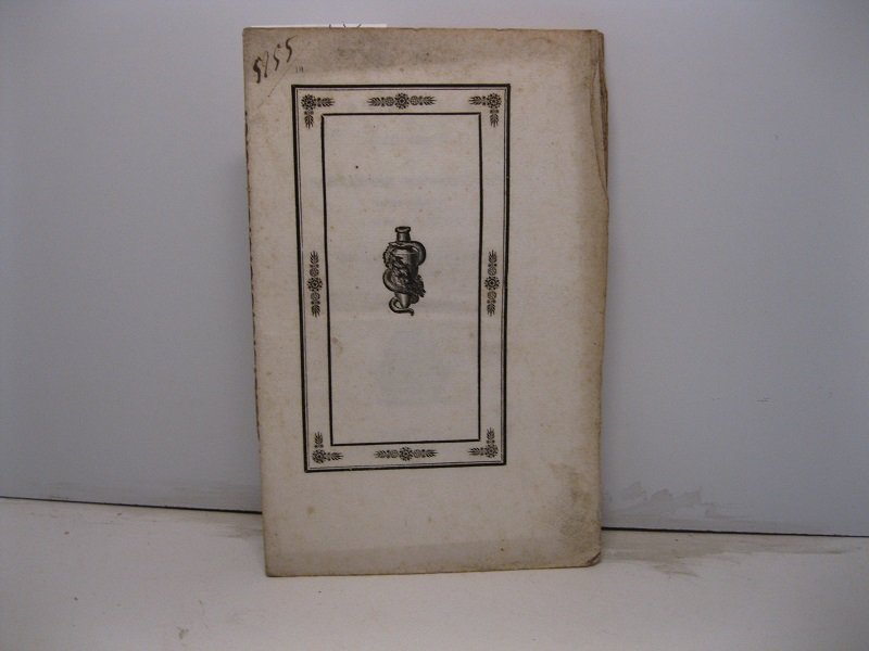 In 8, pp. 20. Br. ed. con decorazioni tipografiche ai piatti. Notizie biografiche relative a Salvatore Mandruzzato (1798-1815), medico trevisano, 'pubblico professore alle terme di Albano', docente di chimica farmaceutica a Padova, cattedra fondata nel 1797 dal regime napoleonico tenuta per un anno da Giuseppe Mingoni e poi, appunto, dal Mandruzzato.