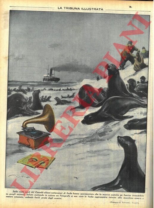 Sulle coste nord del Canadà alcuni catturatori di foche hanno sperimentato che la musica esercita un fascino irresistibile su quegli animali. Infatti mettendo in azione un fonografo si son viste le foche aggrupparsi intorno alla macchina sonora e restare estasiate, cadendo facili prede degli uomini. | Libri antichi e moderni | Pisani Vittorio