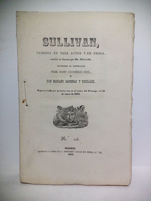 Sullivan. (Comedia en tres actos y en prosa. Representada por primera vez en el Teatro del Príncipe, el 13 de Enero de 1853) / Escrita en francés por Mr. Melesville. Traducida al castellano por Don Isidoro Gil, y Don Mariano Carreras y González | Libri antichi e moderni | Melesville, Mr. (Traducen, Isidoro Gil Y Mariano Carreras Y Gonz, Ález)