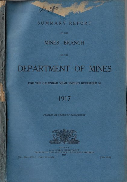 Summary report of the mines branch of the Department of Mines for the calendar year ending december 31 1917 | Libri antichi e moderni |