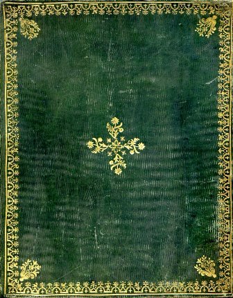 In-4° (260x200mm), pp. (2), 339, (2), attraente legatura del tempo p. pelle verde con decori floreali in oro al centro dei piatti, bordura a motivi floreali e ornamentali in oro lungo il perimetro dei piatti e fiorellini accantonati sempre in oro. Titolo e fregi in oro al dorso. Sguardie cailloutés. Freschissimo e marginoso esemplare. Edizione originale.