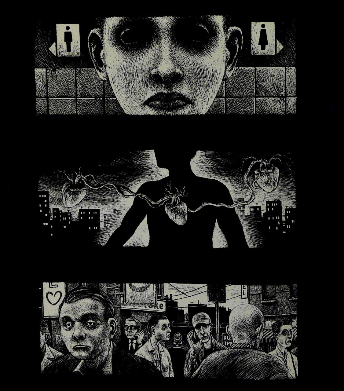 • Narrative Drawings, Nightmares, Anxiety, scratchboard Technique, Interview