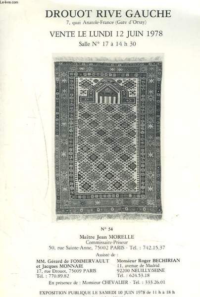 TAPIS D'ORIENT. LE 12 JUIN 1978. | Libri antichi e moderni | Me Jean Morelle, Comm. Priseur