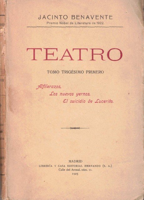 Teatro (Alfilerazos; Los nuevos yernos; El suicidio de Lucerito) | Libri antichi e moderni | Benavente, Jacinto