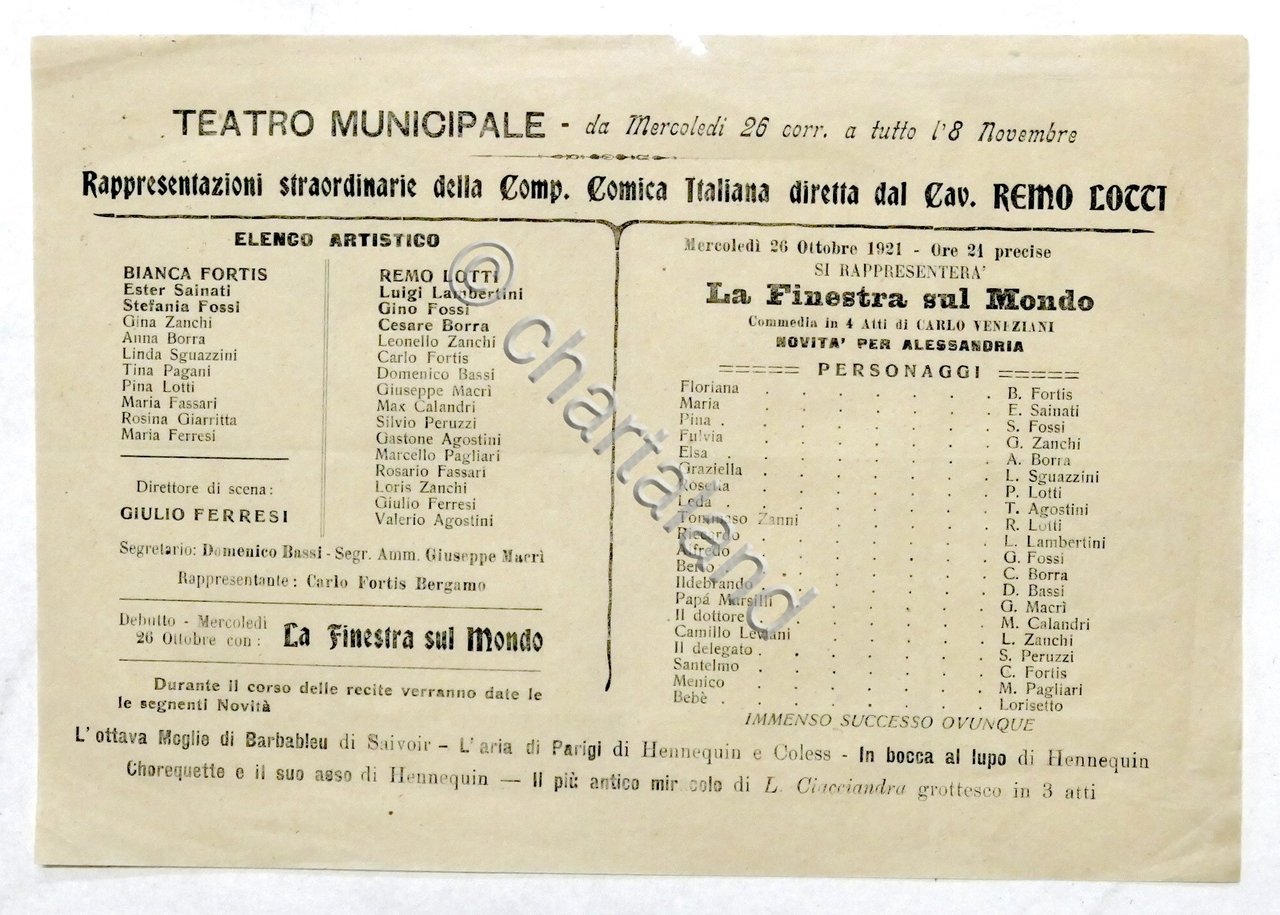 Teatro Municipale Alessandria - Locandina commedia La Finestra sul Mondo 1900 ca | Libri antichi e moderni |