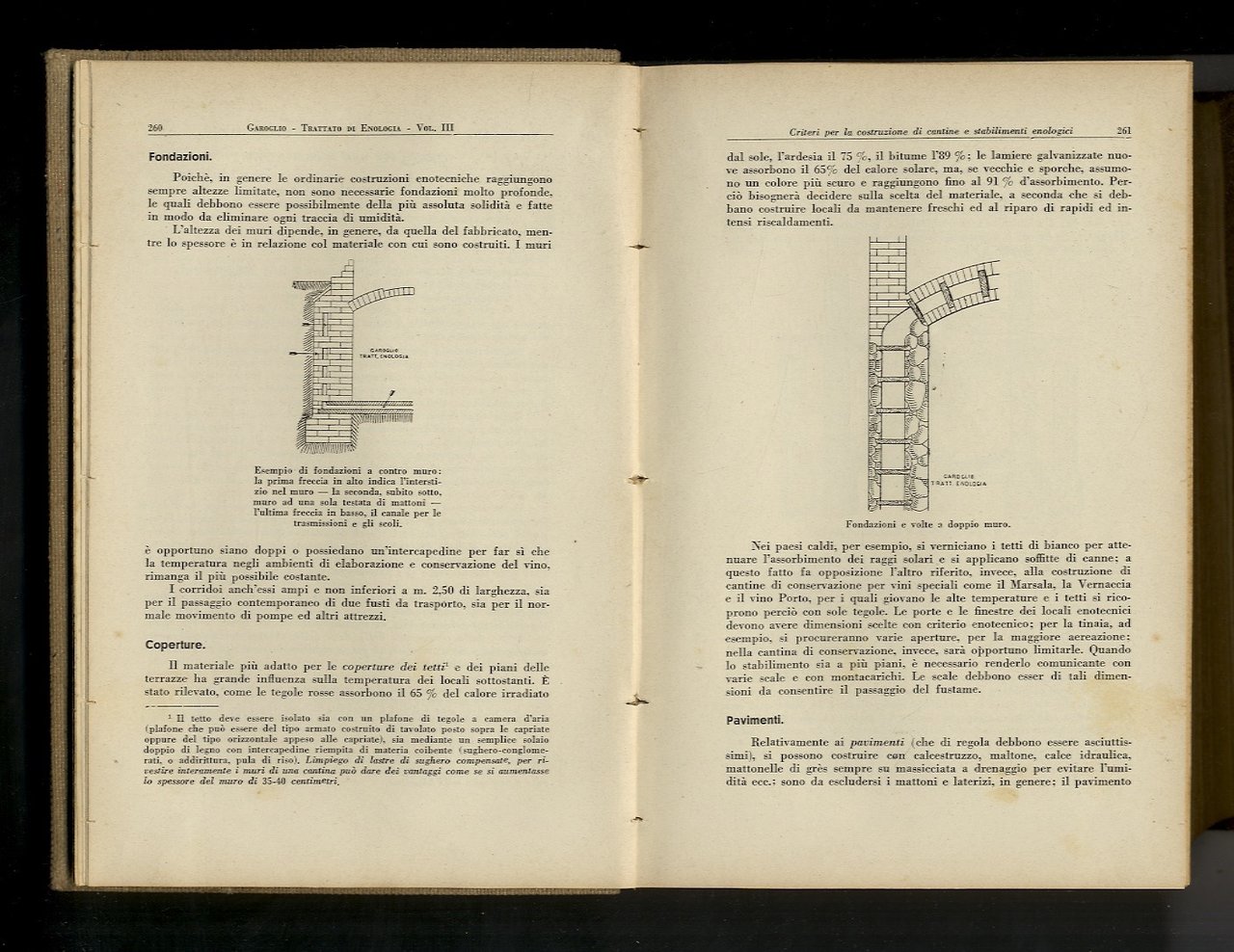 Firenze, "Il Progresso Vinicolo ed Oleario", 1943, in-8 grande, legatura editoriale in piena tela grezza, nome dell'autore e titolo sul piatto anteriore e sul dorso, pp. 15, [1], da 251 a 1614, [2]. Con illustrazioni n.t. Si tratta della ripubblicazione in volume a sé stante del terzo volume del "Trattato di Enologia", che esaurisce l'argomento vinificazione. Come affermato nell'introduzione si sono riutilizzati i cliché di quel volume per la pubblicazione singola di questo (ecco spiegato il perché la paginazione comincia da 250). Ottimo esemplare.