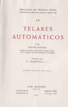 - José Montesó Editor, Biblioteca de Técnica Textil nºIV, 1955,, Barcelona.