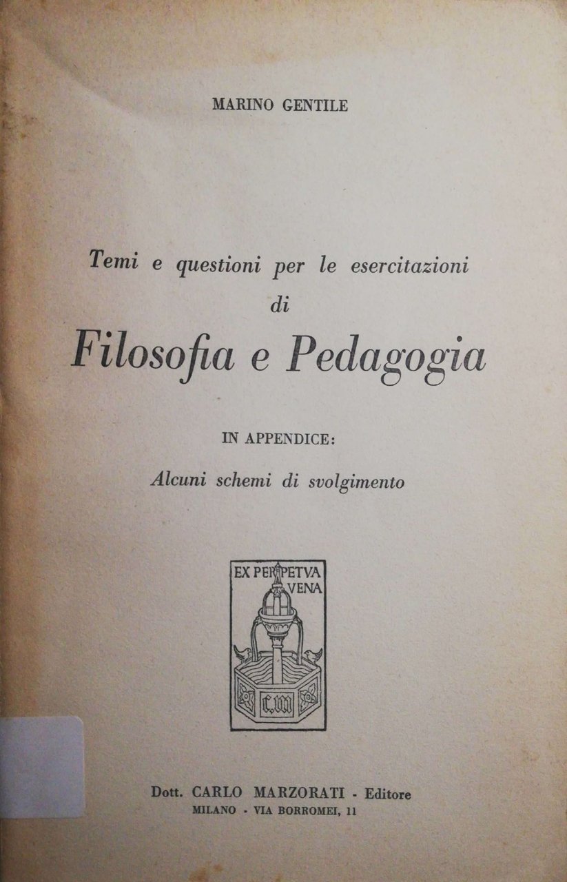 Temi e questioni per le esercitazioni di Filosofia e Pedagogia | Libri antichi e moderni | Marino Gentile, ,Marino Gentile