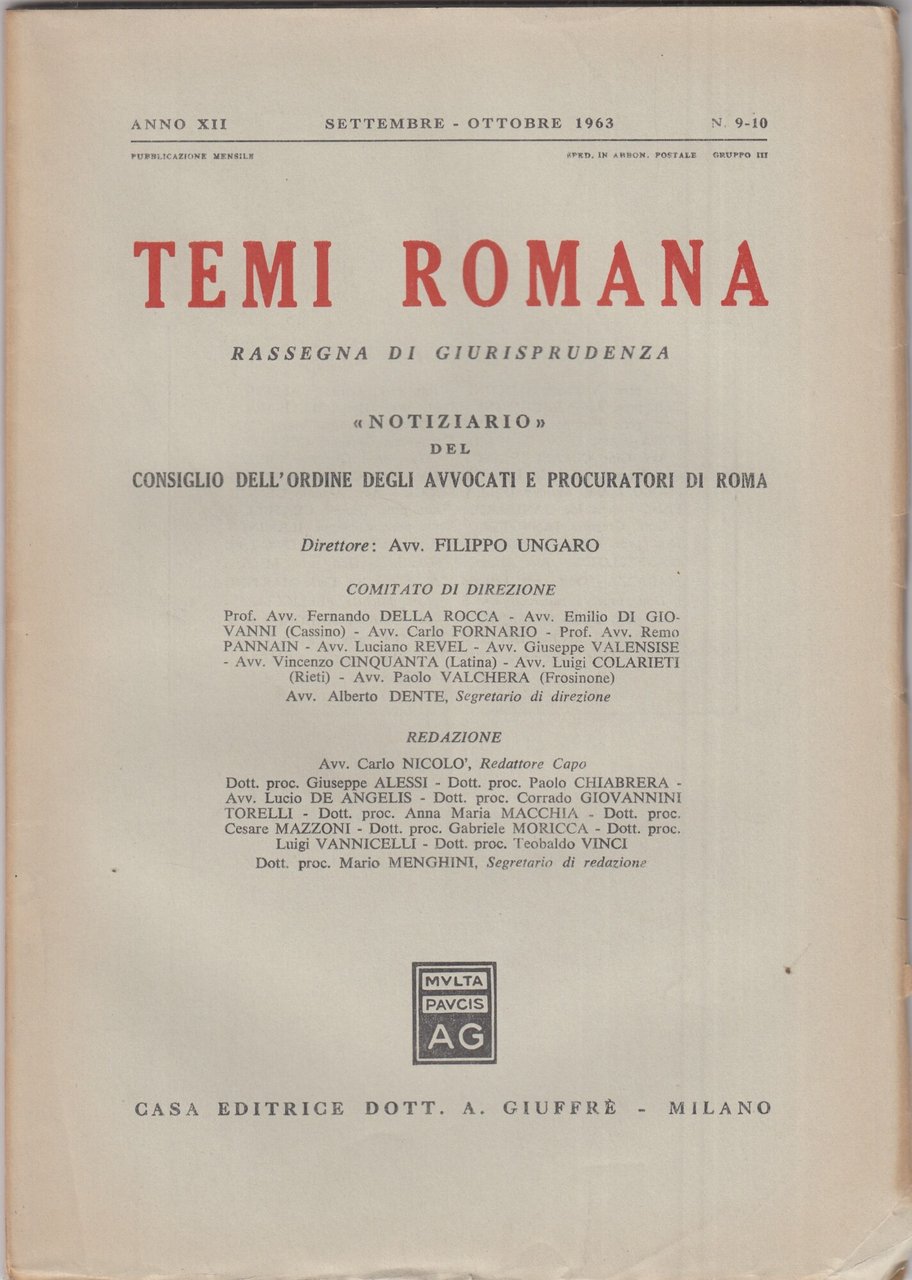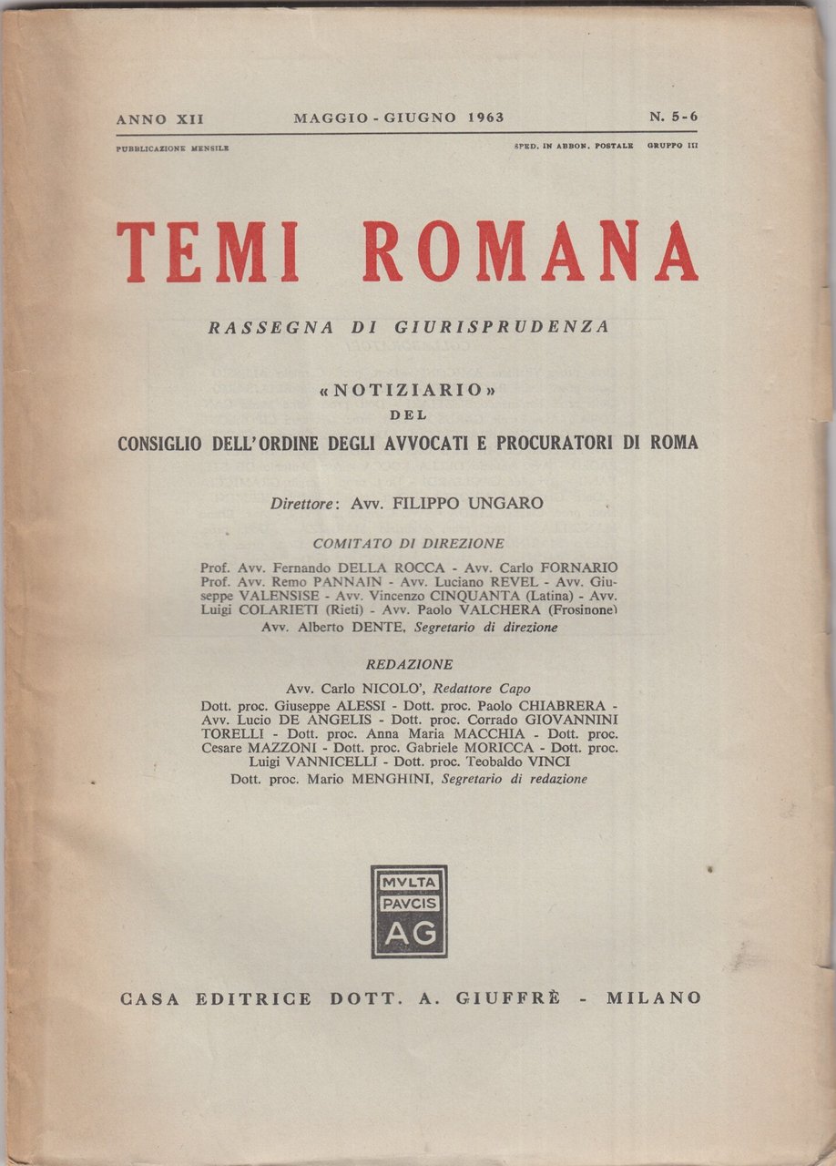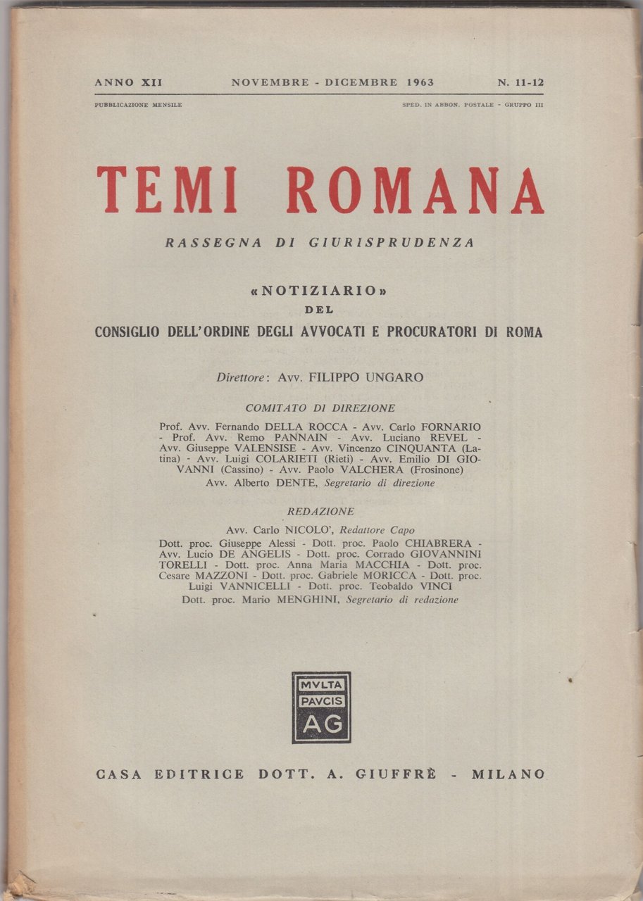 Temi Romana. Rassegna di dottrina e giurisprudenza. 1963. Annata completa. | Libri antichi e moderni | AA.VV., ,AA.VV.