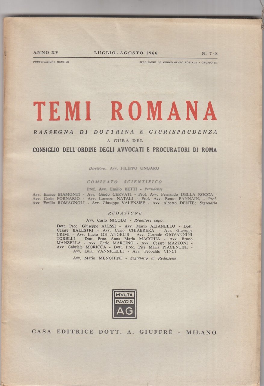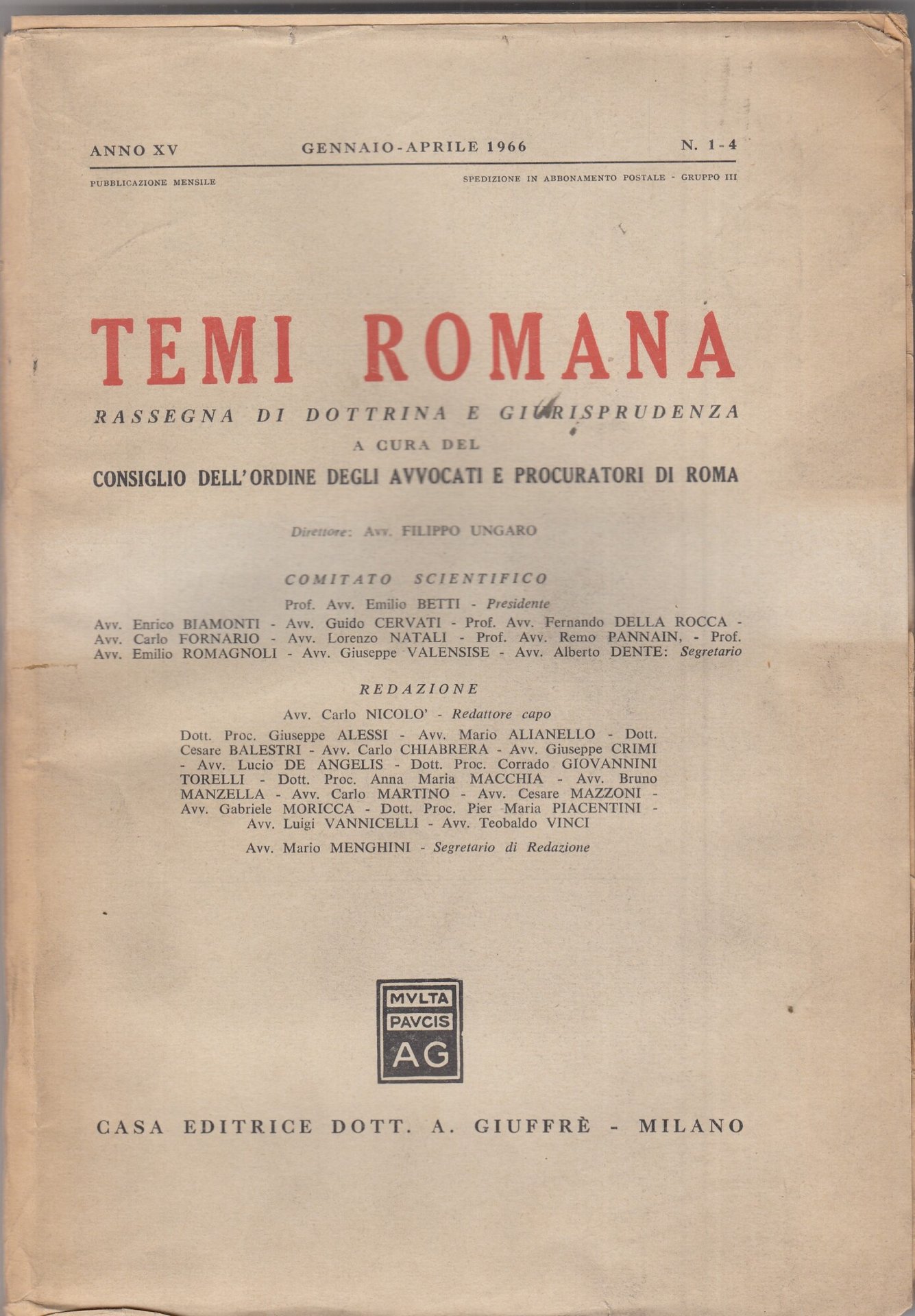 Temi Romana. Rassegna di dottrina e giurisprudenza. 1966. Annata completa. | Libri antichi e moderni | AA.VV., ,AA.VV.