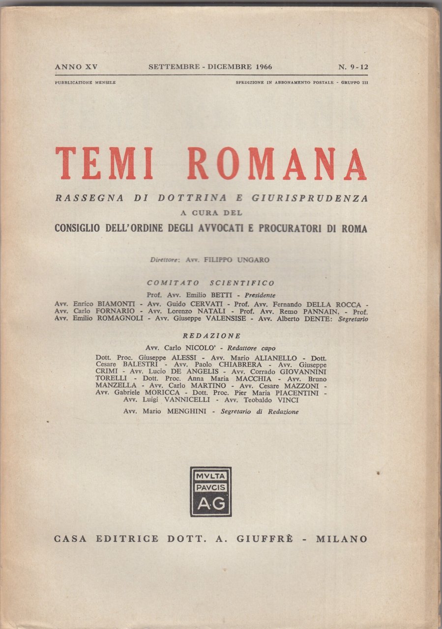 Temi Romana. Rassegna di dottrina e giurisprudenza. 1966. Annata completa.