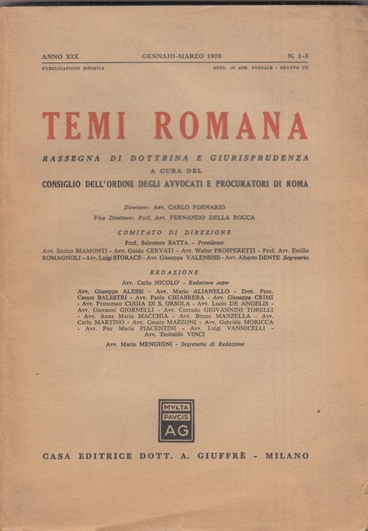 Temi Romana. Rassegna di dottrina e giurisprudenza. 1970. Annata completa. | Libri antichi e moderni | AA.VV., ,AA.VV.