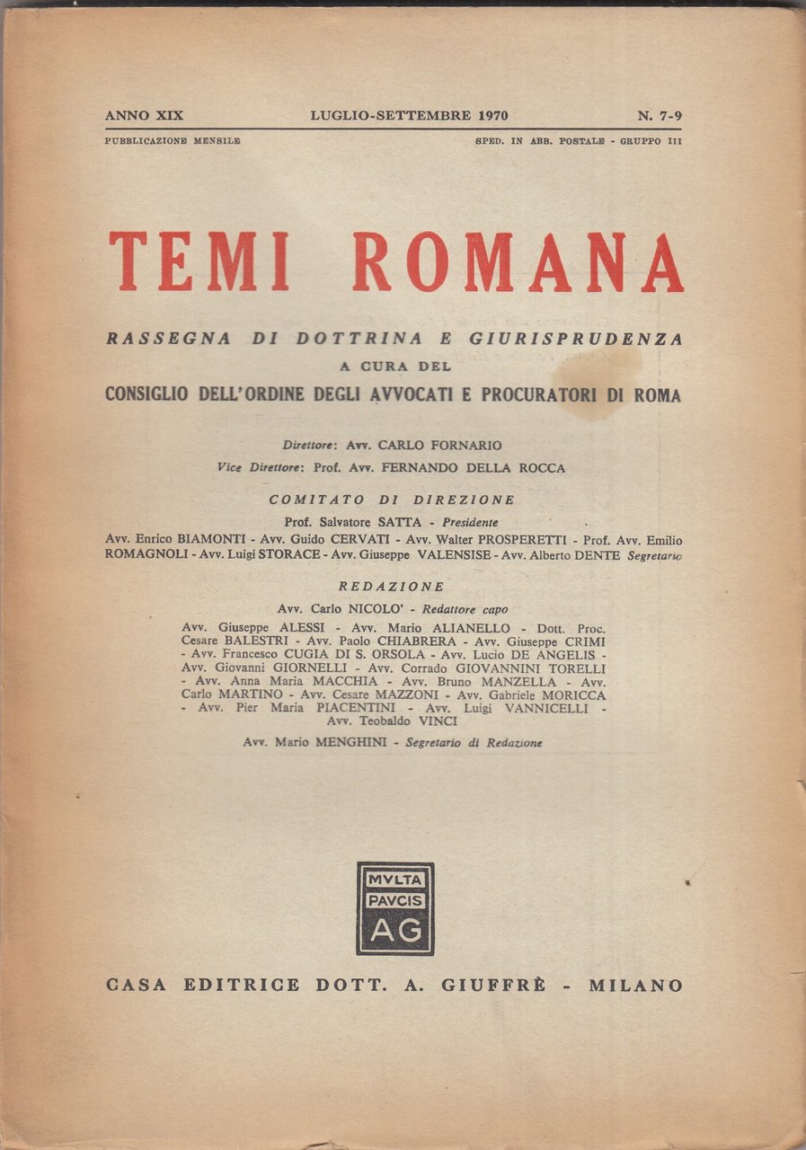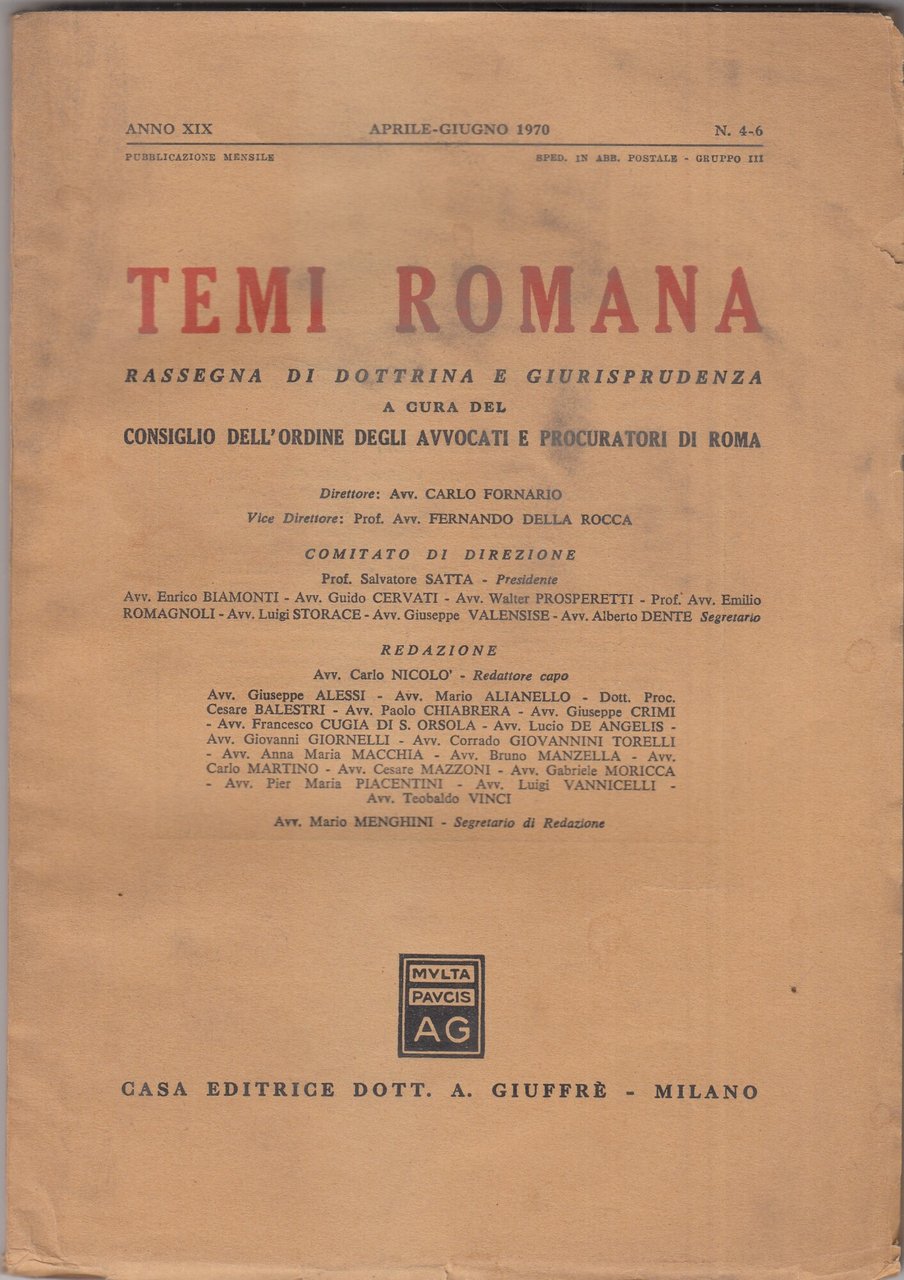 Temi Romana. Rassegna di dottrina e giurisprudenza. 1970. Annata completa.