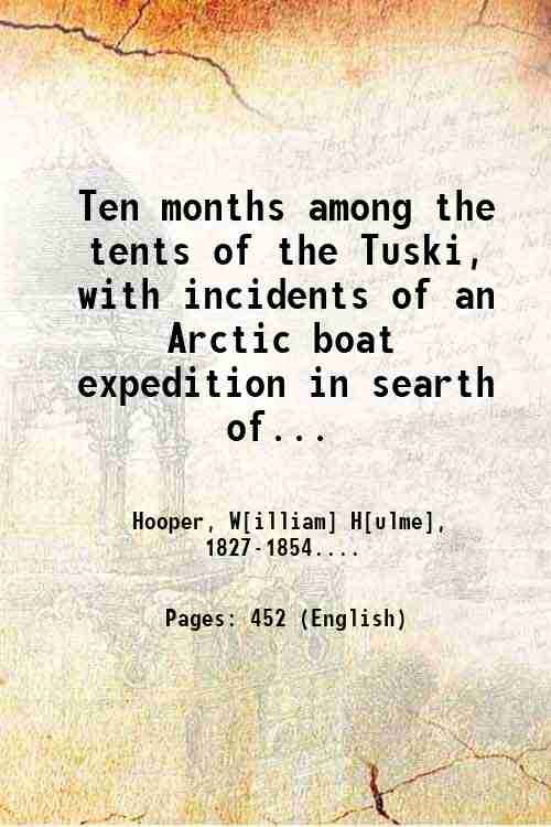 Ten months among the tents of the Tuski, with incidents of an Arctic boat expedition in searth of Sir John Franklin, as far as the Mackenzie River, and Cape Bathurst 1853