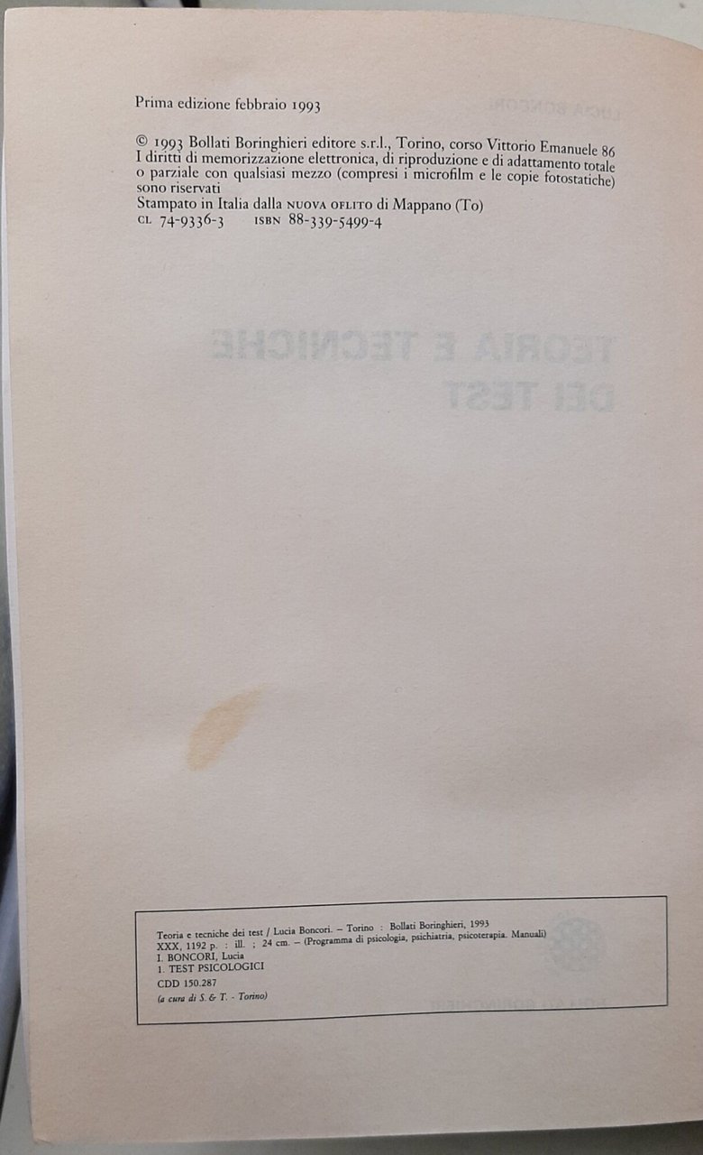 Teoria e tecniche dei test | Libri antichi e moderni | Boncori, Lucia