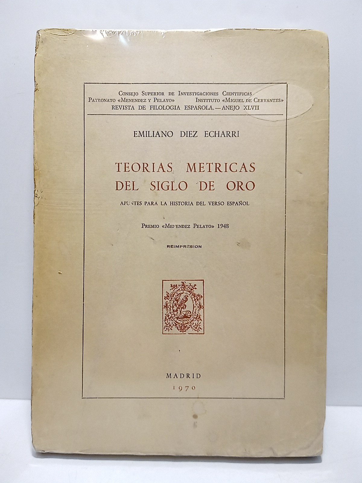 Teorías métricas del Siglo de Oro: Apuntes para la historia del verso español. (Premio "Menendez Pelayo" 1948) | Libri antichi e moderni | Diez Echarri, Emiliano