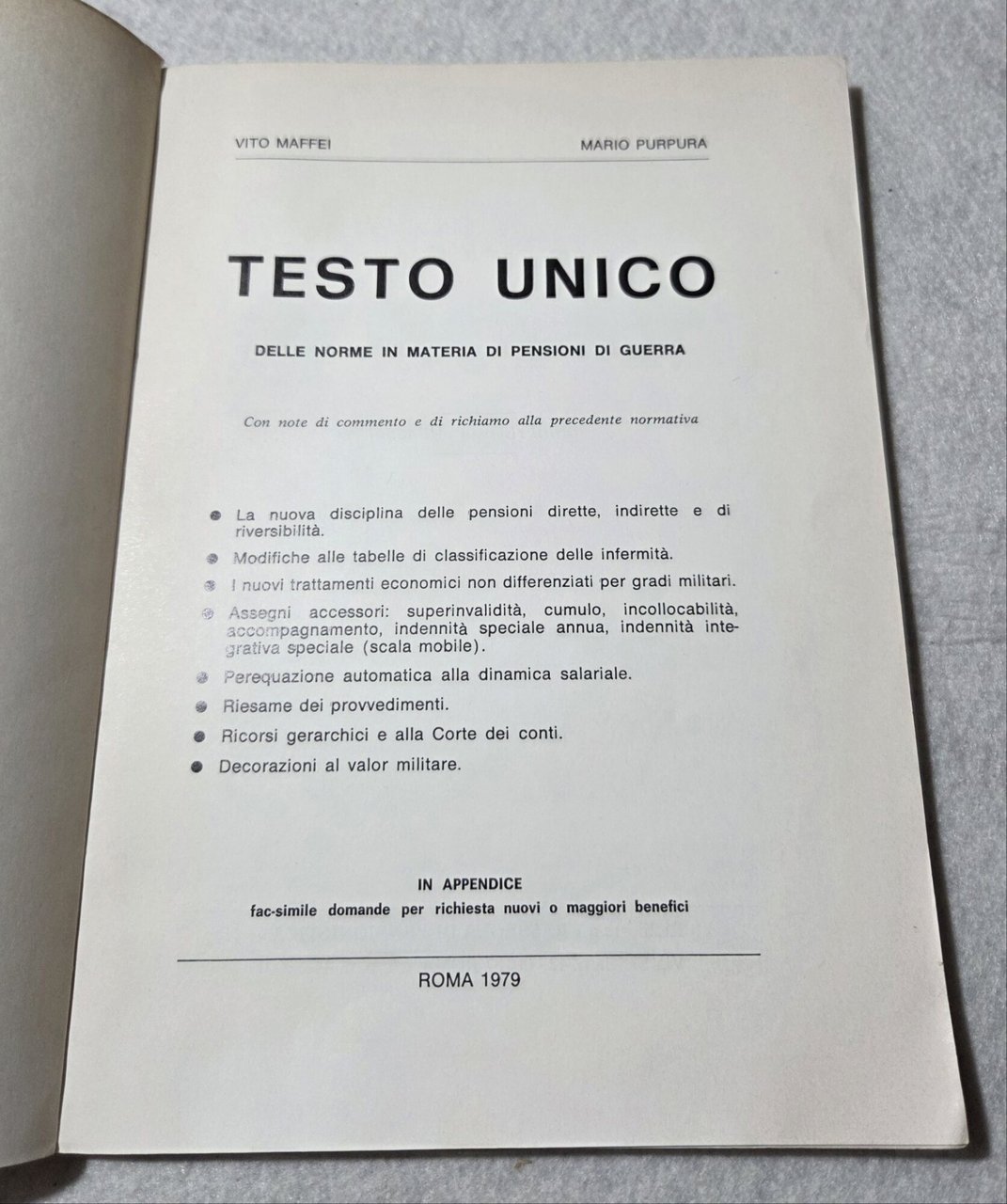 Testo unico delle norme in materia di pensioni di guerra | Libri antichi e moderni | Maffei, V. - Purpura, M.