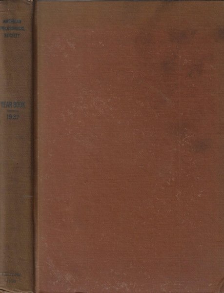 Annuario 1937 degll'American Philosophical Society. Il volume potrebbe contenere timbri ed etichette dell'Istituto Veneto, regolarmente acquisito dalla nostra libreria. Coperta rigida lievemente ingiallita dal tempo presentante segni di usura da scaffale ai margini e tracce di usura da sfregamento ai piatti con lievi abrasioni agli stessi. Pagine godibili anche se leggermente ingiallite dal tempo. Lingua inglese. Numero pagine 433.