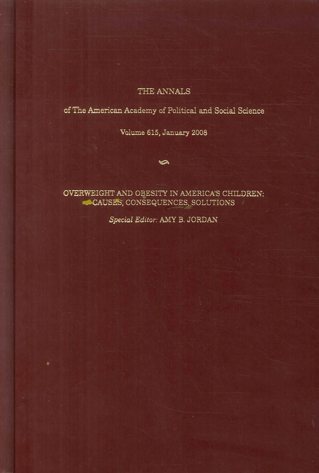 The Annals of the American Academy of Political and Social Science. Volume 615. January 2008. Overweight and Obesity in America's Children. Causes, Consequences, Solutions