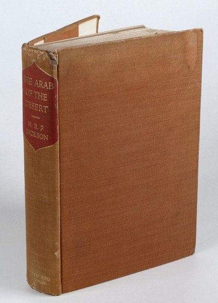 8vo (170 x 236 mm). 664 pp. With frontispiece portrait of HH Sheikh Sir Ahmad al Jabir al Sabah, contemporary Ruler of Kuwait, and numerous plates and text illustrations, as well as a folding map loosely inserted under a cloth tab in the lower cover. Original publisher's red cloth. Second edition of this classic work by Lieutenant Colonel Harold Richard Patrick Dickson (1881-1959), British colonial administrator in the Middle East from the 1920s until the 1940s. - Blue ballpoint ownership of Margaret & Vince Reel, dated 1957, to front pastedown. In very good condition. - OCLC 6947893. Cf. Macro 840 (1st ed.).