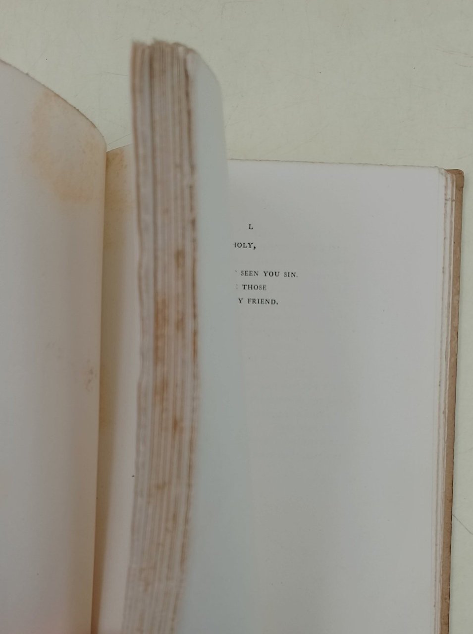In 16', leg.ed., pp.76; prima edizione del secondo libro dell'A., il primo pubblicato con il suo nome, raro. Abrasioni al dorso e ai margini dei piatti , firma di appartenenza a matita al risguardo, ampie ma leggere fioriture ai risguardi su alcune pagine interne, e ai tagli, leg. salda.