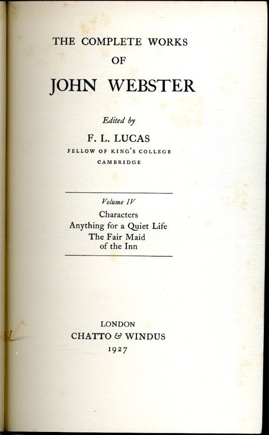- Webster, John And Lucas, F. L. (Editor)