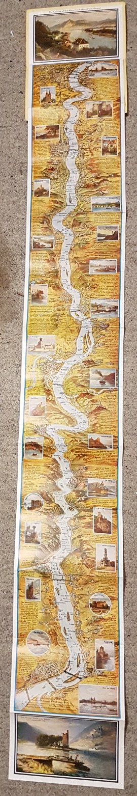 No marks or inscriptions. Creasing to upper corners of covers. A fold-out relief map with unmarked covers. 1pp. Opens up to 120 x 8 inches. All the sights doen the Rhine with descriptions in English.