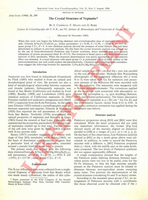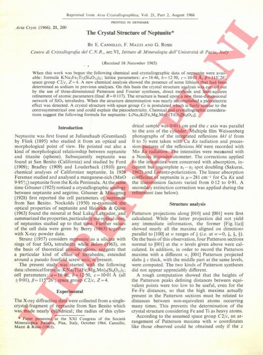 The crystal structure of Neptunite. | Libri antichi e moderni | Cannillo E. - Mazzi F. - Rossi G.