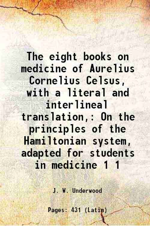 The eight books on medicine of Aurelius Cornelius Celsus, with a literal and interlineal translation, On the principles of the Hamiltonian system, adapted for students in medicine Volume 1 1830 | Libri antichi e moderni | J. W. Underwood