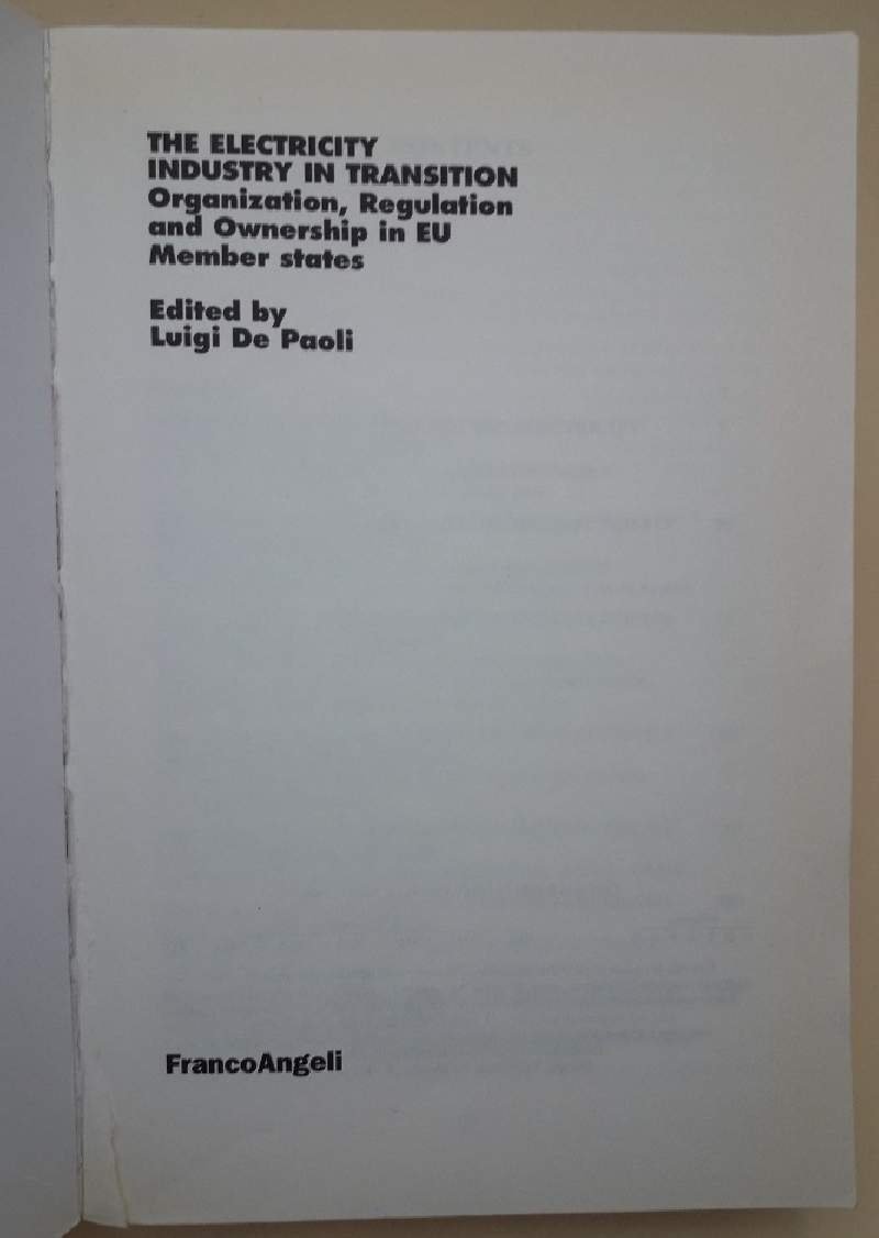THE ELECTRICITY INDUSTRY IN TRANSITION- ORGANIZATION, REGULATION AND OWNERSHIP IN EU MEMBER STATE(2001) | Libri antichi e moderni | De Paoli Luigi