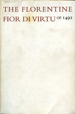In-8°, pp. XXXI, 120, cartonatura editoriale pergamenata con titolo in rosso e in nero. Numerosi facsimili n.t. delle xilografiche che adornavano la magnifica edizione del 1491 del 'Fior di Virtù'. Testo in Poliphilus Roman e in Blado Italic. Perfetto stato. Traduzione inglese di Nicholas Fersin, con riproduzione delle xilografie originali quattrocentesche. Introduzione di Lessing J. Rosenwald. Con concordanze delle edizioni impresse nel XV secolo dell'opera. Tiratura di 3000 copie. 'It would be difficult to find a more absorbing topic than this particular edition of 'Fior di Virtu. Its importance is only exceeded by its beauty, and in particular the unusual quality of its illustrations. There are 41 chapters in the book. The first six deal with Love, as the fundamental Christian virtue. These chapters are unusually long and the treatment folllows a fixed pattern. Chapter VII concerns itself with Women - their good points and those not so good. Thereafter the chapters alternate, first giving the virtue and then its corresponding vice: Pity is followed by Cruelllty, Liberality by Avarice' (Introduction).