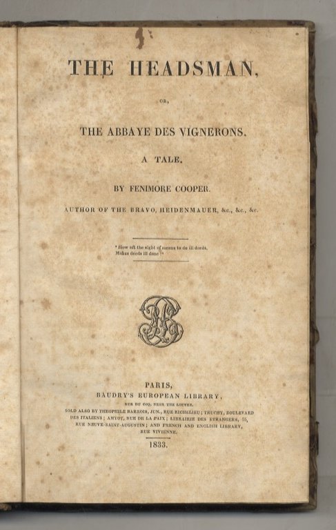 The Headsman, or the Abbaye des Vignerons. A Tale. | Libri antichi e moderni | Cooper Fenimore.