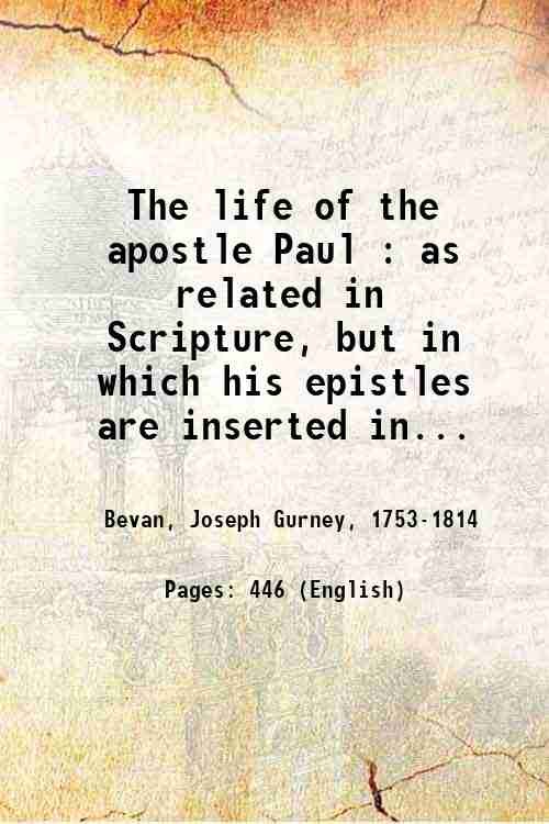 The life of the apostle Paul : as related in Scripture, but in which his epistles are inserted in that part of the history to which they are supposed respectively to belong : with selected notes, critical, explanatory, and relating to persons and places, and a map of the countries in which the apostle travelled 1807